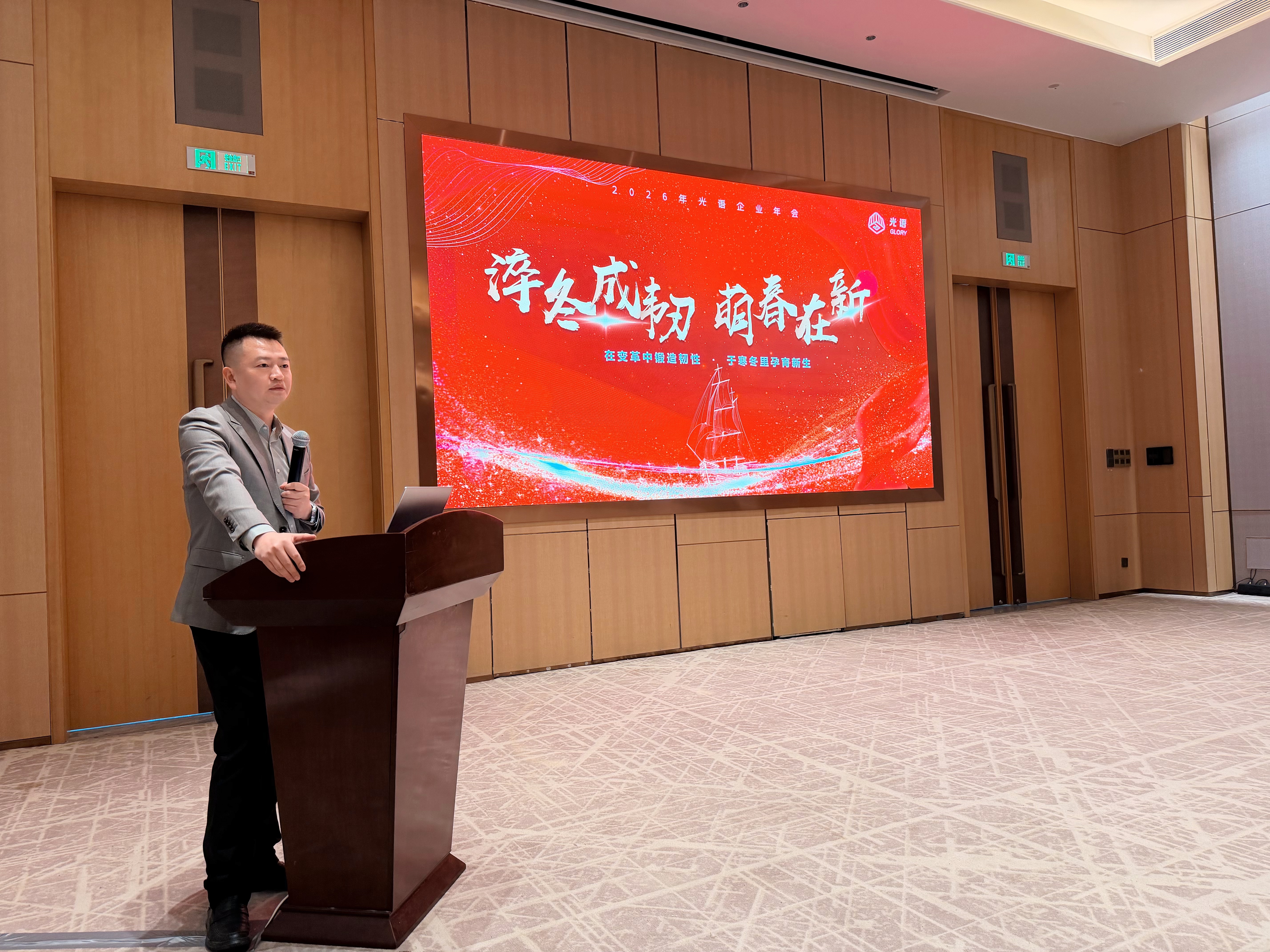 聚光成炬,同心前行。2026年2月10日,以“同心聚光 共赴山海”为主题的光语2025年度总结暨2026年度展望大会在广州举行。光语总经理杨朝升与公司同仁齐聚一堂,共同回顾过去一年发展历程,深度谋划2026年战略蓝图,表彰年度先进,凝聚团队共识,并以昂扬斗志正式吹响新一年聚力突破的冲锋号角。