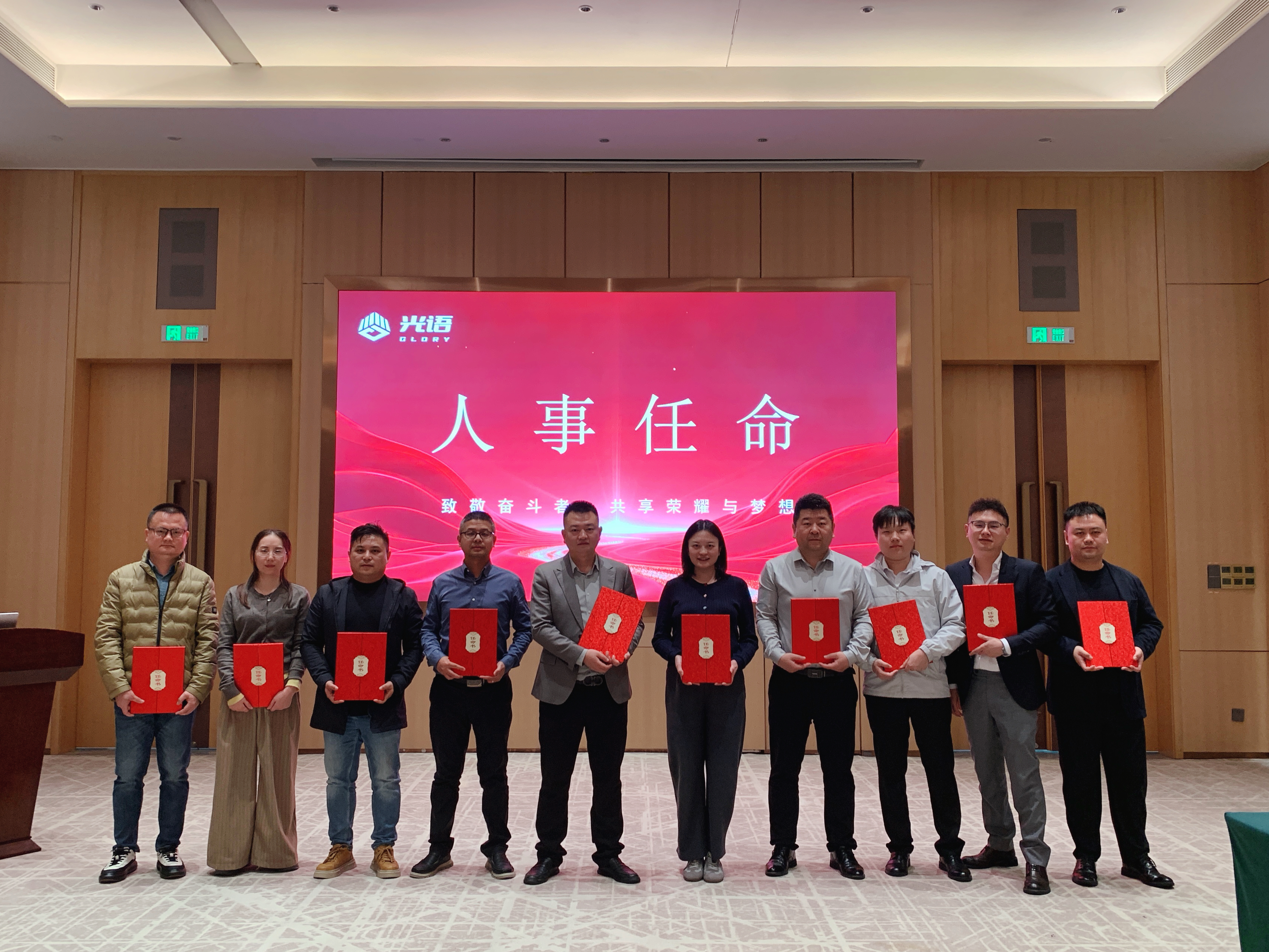 复盘是理性的沉淀,荣耀是对奋斗最真挚的礼赞。根据公司经营发展与管理升级需要,光语在会上正式公布一系列核心人事任命:任命杨朝升为光语通信总经理,全面负责公司经营管理工作;任命龙文为光语通信副总经理,全面协助落实经营实施;同时任命彭巧英为董事长助理,高庆雯任财务总监与人力资源总监,并分别任命销售、项目、产品、解决方案、技术交付及商务等各业务线负责人,进一步健全治理架构,强化战略执行体系。